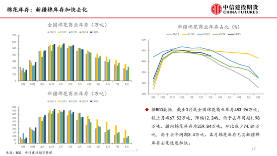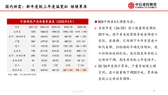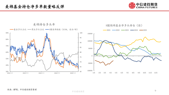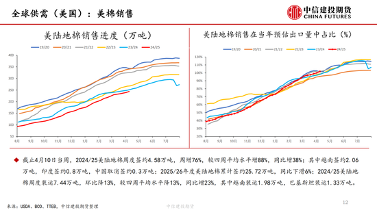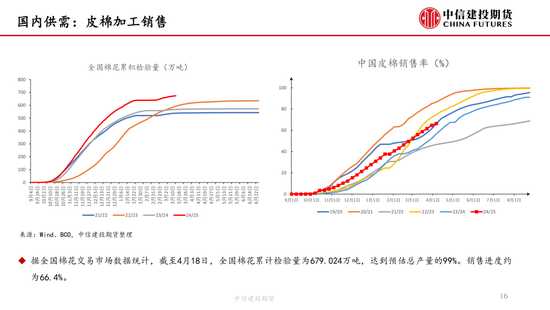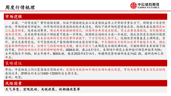 本周,“平等关税”事件无间发酵,但在中国坚毅反击以及好意思债收益率高潮等的多重压力下,特朗普口风有所松动,阛阓情感有所世俗,但阛阓对经济败落的担忧并未隐没,棉纺卑劣阛阓不雅望情感浓厚。短期来看我国棉花加工已基本结束,迎来纯破钞季,营业库存数据保管高位,但因部分库存资本较高,货主出售意愿较低,实质省略流畅库存有限,且关税带来的入口棉数目可能进一步裁减,短期供应端的压力进一步减轻,因此虽然需求端的问题天然突显,但短期来看,在未出现新的突发风险事件前提下,下方空间或如故不大,近期现货销售基差上调较着。另外,若眼神看得更远,不行疏远的是产量预期增多集会需求的悔恨,中遥远的压力依然如灰犀牛般慢步走来,因此跟着新棉栽植的开启,后续天气的影响越发要津,若北半球天气在棉花滋遥远天平地安,不扬弃棉价将来无间下探的可能,棉价运行向北半球新棉栽植飘摇。USDA数据,截止4月13日,好意思棉15个棉花主要栽植州棉花栽植率为5%;旧年同时水平为5%,较旧年捏平。BCO数据,箝制2025年4月14日,新疆棉花举座播撒程度约62.3%,播撒岑岭坚韧开启。