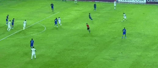 补时第3分钟,伊里安托禁区右侧碎裂,岳鑫将其放倒,乌兹别克斯坦籍主裁判纳贾法列夫判罚点球。2分钟后,蒂罗尼操刀主罚点球射中,3-4!