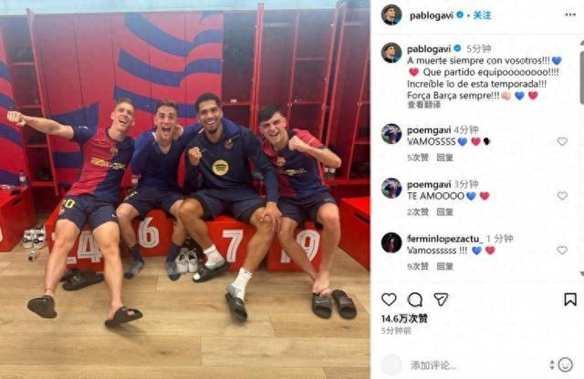 加维社媒晒与佩德里等东谈主庆祝合影:多棒的团队,不行念念议的赛季!
